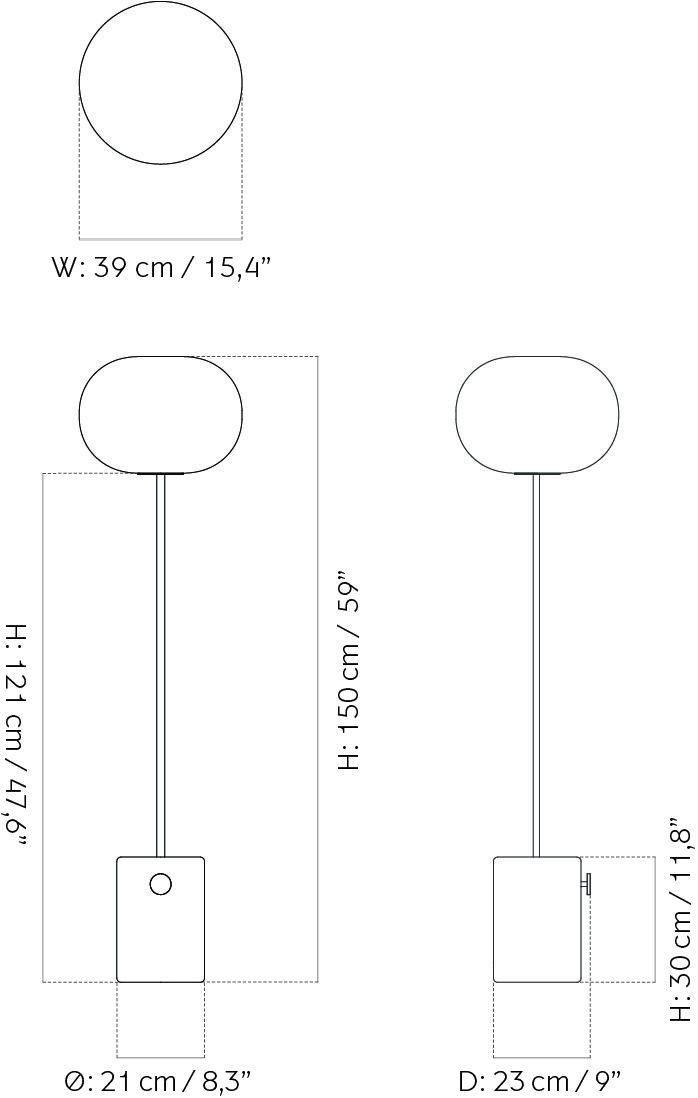 Lampadaire JWDA en travertin de qualité, avec variateur d'intensitéLe verre opale et la pierre naturelle - une combinaison noble qui séduit d'emblée. Le lampadaire JWDA est une création artistique du designer et architecte suédois Jonas Wagell. Faisant partie de la célèbre série de luminaires JWDA, il incarne la fonctionnalité et l'esthétique intemporelle. Chaque luminaire est une pièce unique, car le socle de forme cylindrique est fabriqué en travertin, une pierre naturelle de grande valeur. L'abat-jour ressemble à une ellipse et est en verre opale soufflé à la bouche. Cela n'est pas seulement esthétique, mais contribue également à une répartition uniforme et non éblouissante de la lumière. Grâce à son design minimaliste, le lampadaire JWDA trouve sa place non seulement dans les pièces d'habitation modernes, mais aussi dans le domaine de la gastronomie et de l'hôtellerie et peut parfaitement être combiné avec d'autres luminaires de la série JWDA.