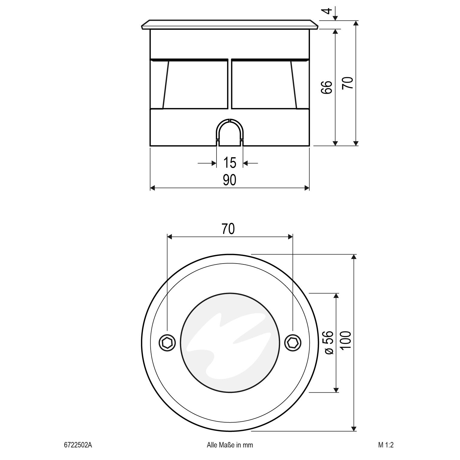 Encastré de sol à LED 6722502A, anti-éblouissant, 3.000 K, IP67Alors que le boîtier de l'encastré de sol à LED 6722502A est fabriqué en aluminium, le cache est en acier inoxydable V2A. Le couvercle satiné des LED en verre assure en outre une émission de lumière sans éblouissement. De plus, ce luminaire encastré est protégé contre l'immersion temporaire et peut donc être utilisé à l'extérieur.Une douille d'encastrement en plastique est comprise dans la livraison. le 6722502A est conçu pour un raccordement direct à une ligne d'alimentation de 230V et ne nécessite donc pas de pilote externe. Avec sa lumière blanc chaud diffusée dans un angle très large, ce luminaire encastré dans le sol peut aider à s'orienter, par exemple au bord d'un chemin.Caractéristiques techniques / propriétés- pot d'encastrement inclus- anti-éblouissement- répartition lumineuse : symétrique- distribution extrêmement large : 120°- type de protection IP67 : protégé contre l'immersion temporaire jusqu'à une profondeur de 1,5 m- pas de pilote externe nécessaire / connexion directe 230V- tension : 100 à 240V/AC