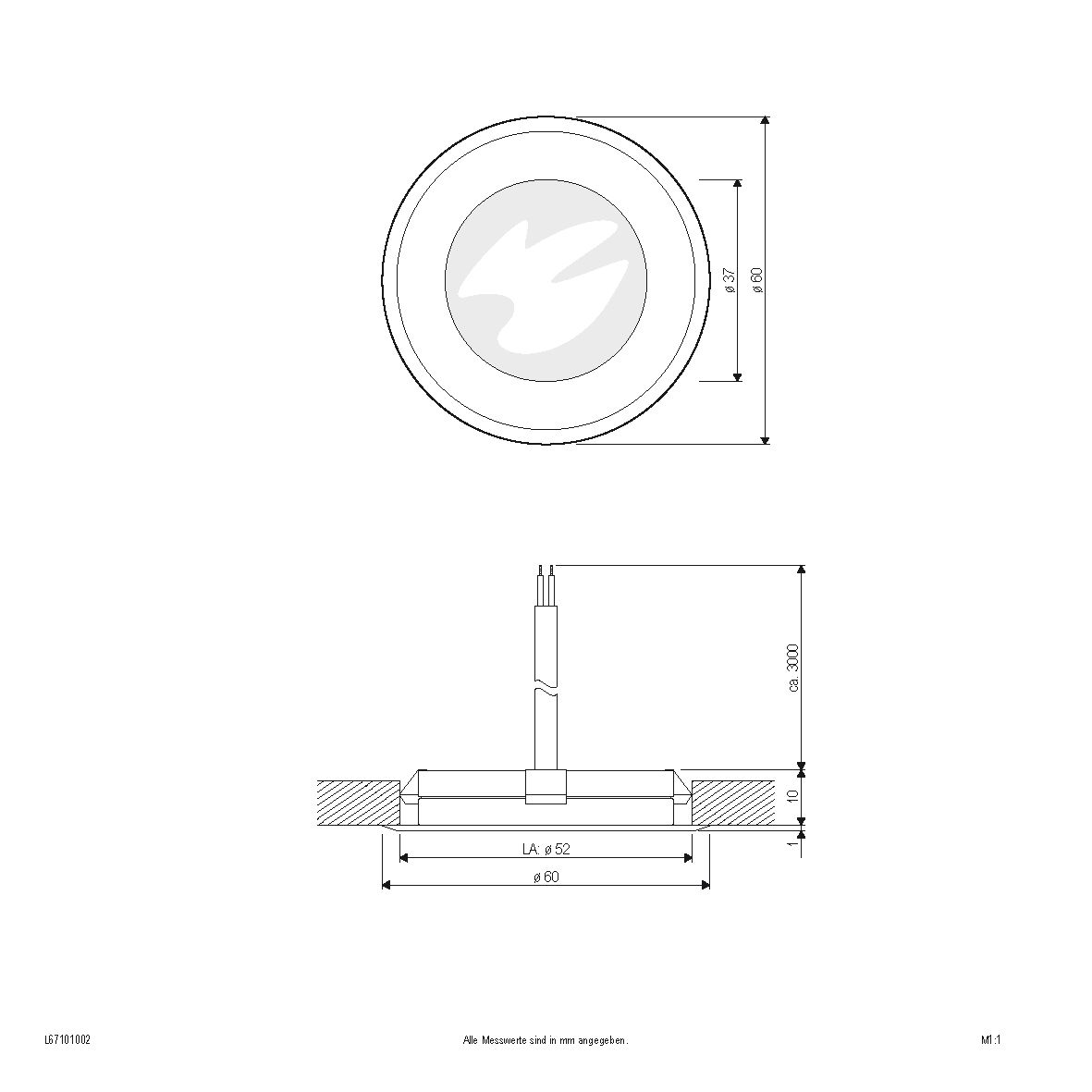 Luminaire encastré dans le sol LED rond L6710 en acier inoxydable V4A, anti-éblouissant, 12V/DC, IP67 Le luminaire encastré dans le sol LED L6710 assure un éclairage décoratif anti-éblouissant grâce à un cache en verre blanc opale qui s'intègre dans le boîtier en acier inoxydable V4A. Pour le raccordement à un driver adapté (voir accessoires), le luminaire est livré avec des extrémités de fils ouvertes et un câble de trois mètres. Grâce à sa protection IP élevée, le L6710 peut être utilisé de manière fiable en extérieur. Bien entendu, il convient tout aussi bien à une utilisation en intérieur. La puce LED intégrée produit une lumière qui est émise dans un angle de rayonnement très large et assure ainsi un éclairage sur toute la surface. Caractéristiques techniques / propriétés - éclairage non éblouissant - acier inoxydable V4A - répartition de la lumière : symétrique - rayonnement extrêmement large : 120° - charge maximale : 1,5 kg. Capacité de charge 150 kg - protection IP67 : protégé contre l'immersion temporaire jusqu'à une profondeur de 1,5 m - tension : 12V (AC/DC) - câble de raccordement de 3 m avec extrémités de fils libres Remarque : un driver adapté est impérativement nécessaire pour le fonctionnement (voir accessoires).