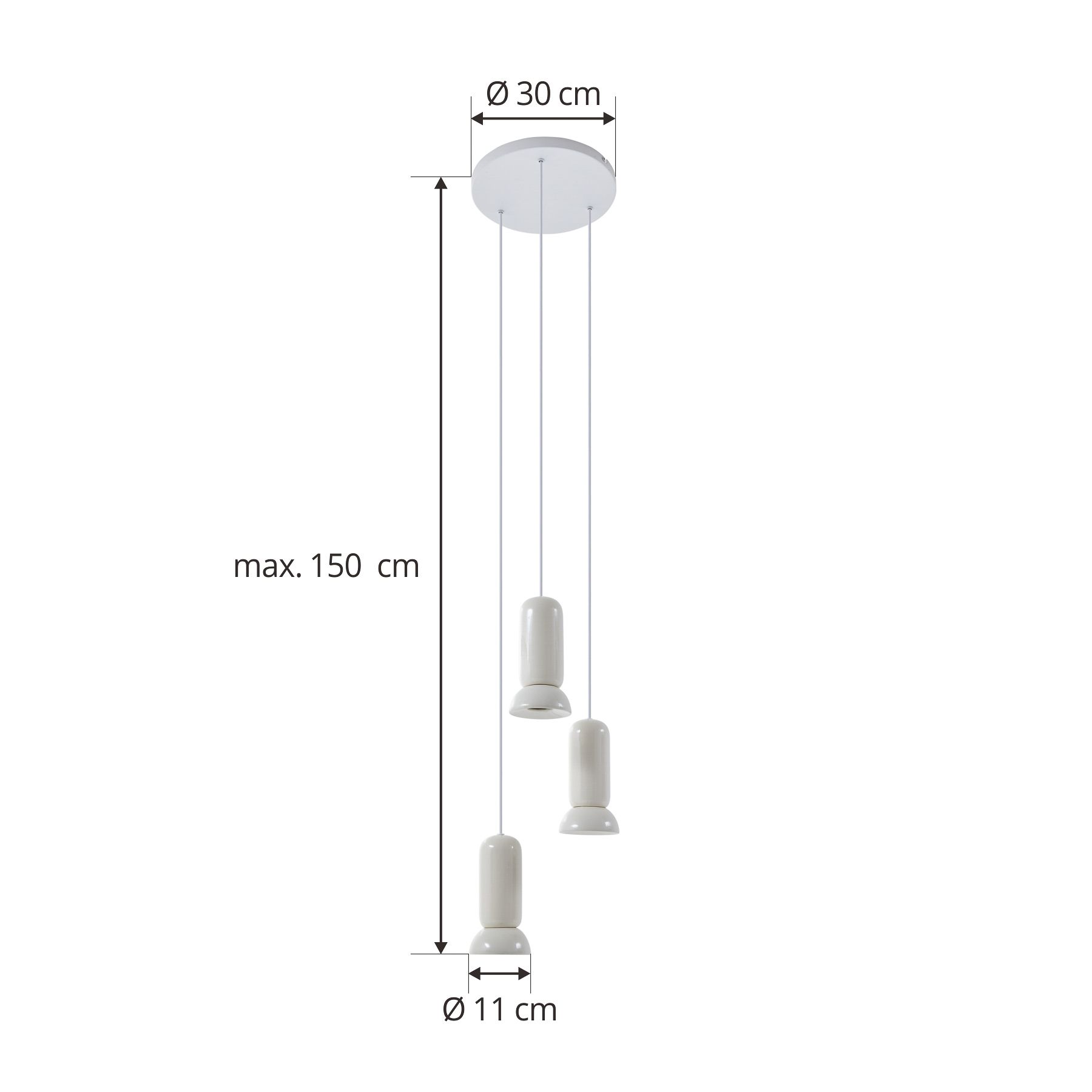 Lindby Suspension Kerimi, céramique, crème, 3 lampes, ronde