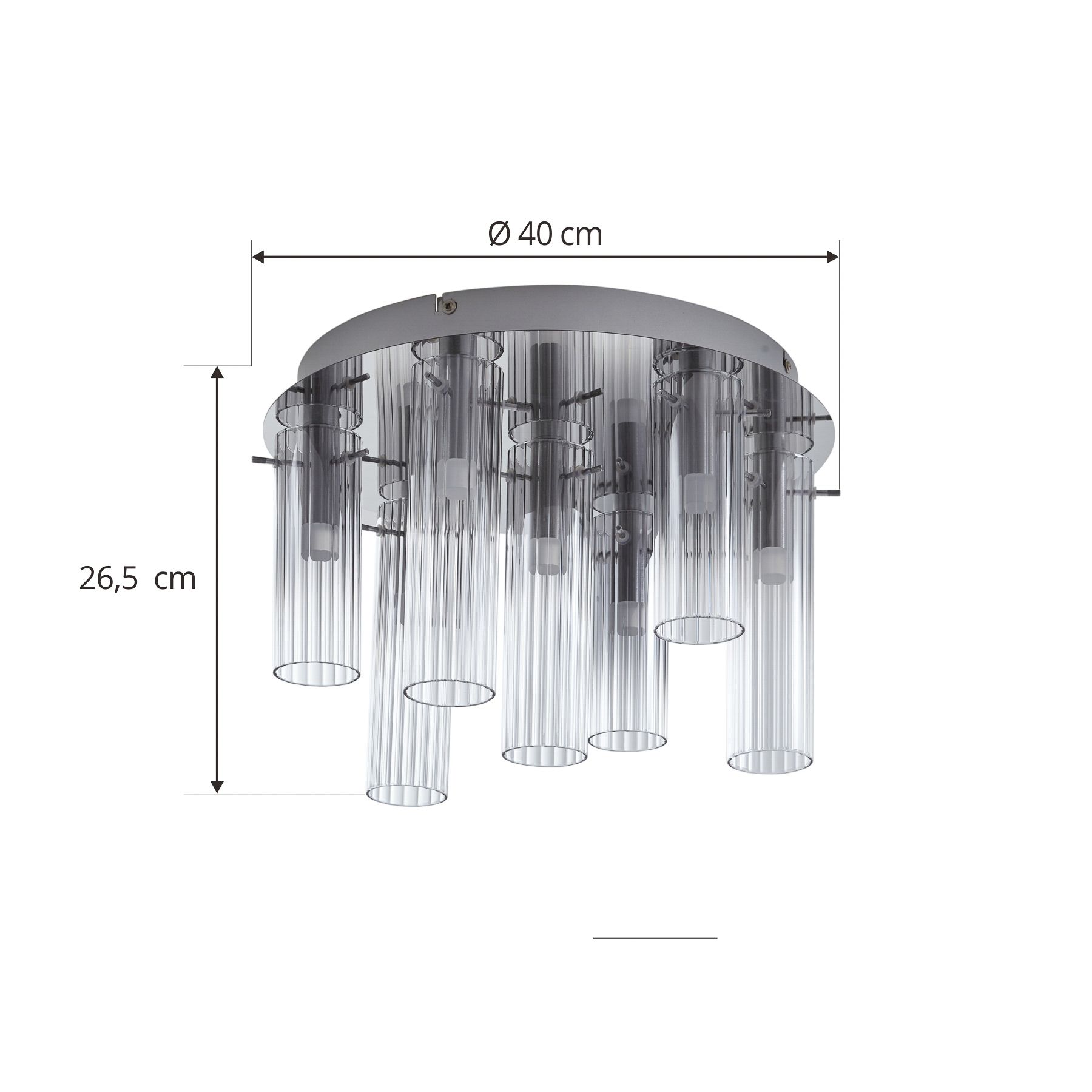 Plafonnier LED Korvitha à 7 lampes avec abat-jour en verre Ce plafonnier confère à votre intérieur quelque chose de particulier. Il éclaire parfaitement vos pièces et devient un élément décoratif grâce à son beau design. Un design de bon goût et un sentiment de bien-être convaincant caractérisent cette lampe de la marque Lucande. Grâce à la possibilité de varier l'intensité, vous pouvez régler la luminosité selon vos besoins en trois étapes (10 %, 50 % et 100 %) à l'aide d'un interrupteur mural. Le plafonnier diffuse une agréable couleur de lumière blanche chaude dans votre espace de vie. Le plafonnier de couleur grise et argentée s'intègre parfaitement dans n'importe quel intérieur et crée une superbe atmosphère chaleureuse. C'est un moyen sûr d'éclairer vos pièces et donc un excellent choix. Le plafonnier ne se contente pas de diffuser une belle lumière, il remplit également une fonction décorative.