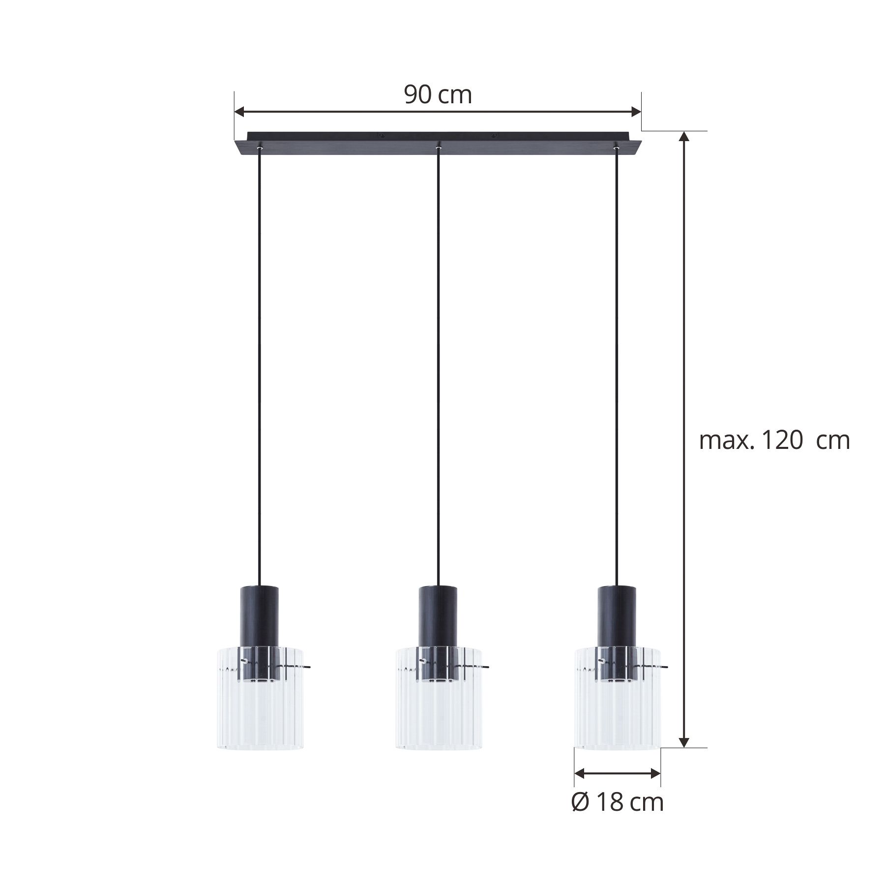 Suspension à 3 lampes Eirian avec abat-jour en verre au design moderne Cette lampe est le choix idéal pour votre intérieur. Le plafonnier affiche un style superbe et s'intègre merveilleusement bien dans n'importe quelle pièce. Un excellent design et une expérience de vie unique caractérisent cette suspension de la marque Lucande. L'intensité de la lumière peut être réglée selon vos souhaits à l'aide d'un variateur d'intensité variable externe (non inclus). Vous pouvez installer des ampoules avec un culot E27 dans ce plafonnier. Le luminaire noir crée une atmosphère chaleureuse et est bien mis en valeur dans chaque pièce. Cette lampe enrichit l'image globale de votre intérieur. Grâce à ce plafonnier, vous pouvez encore embellir l'aspect de votre espace de vie.