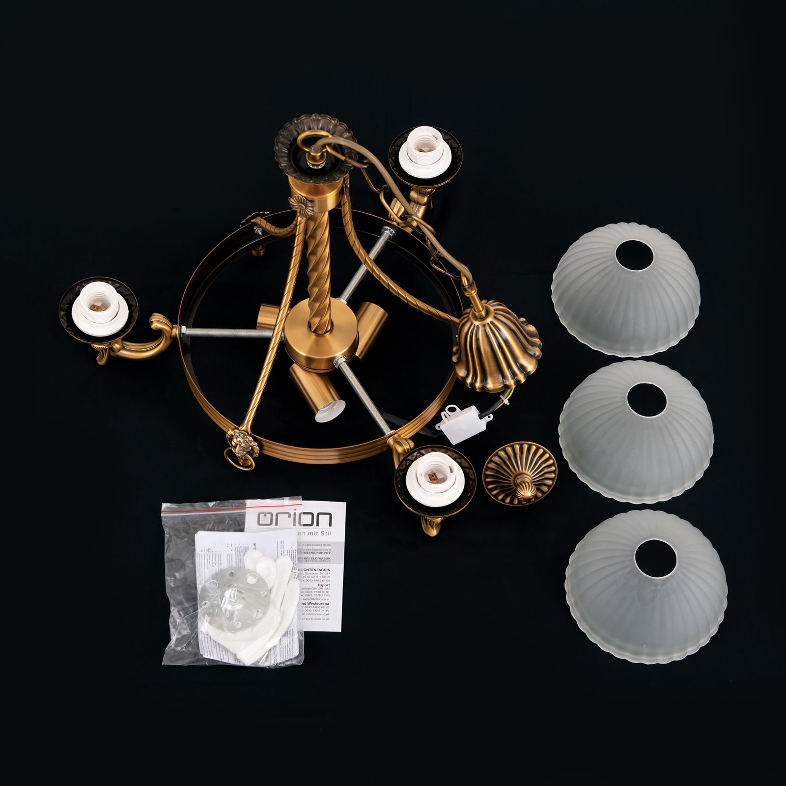 Lustre détaillé RoccaLe lustre Rocca présente un aspect classique avec une belle structure métallique. Celui-ci a un aspect bronze et est complété par des abat-jour en verre blanc. Le cadre métallique dispose de détails attrayants qui se manifestent notamment dans la lumière des abat-jour. Le lustre Rocca crée une ambiance particulière en diffusant une lumière indirecte vers le bas et une lumière directe vers le haut.