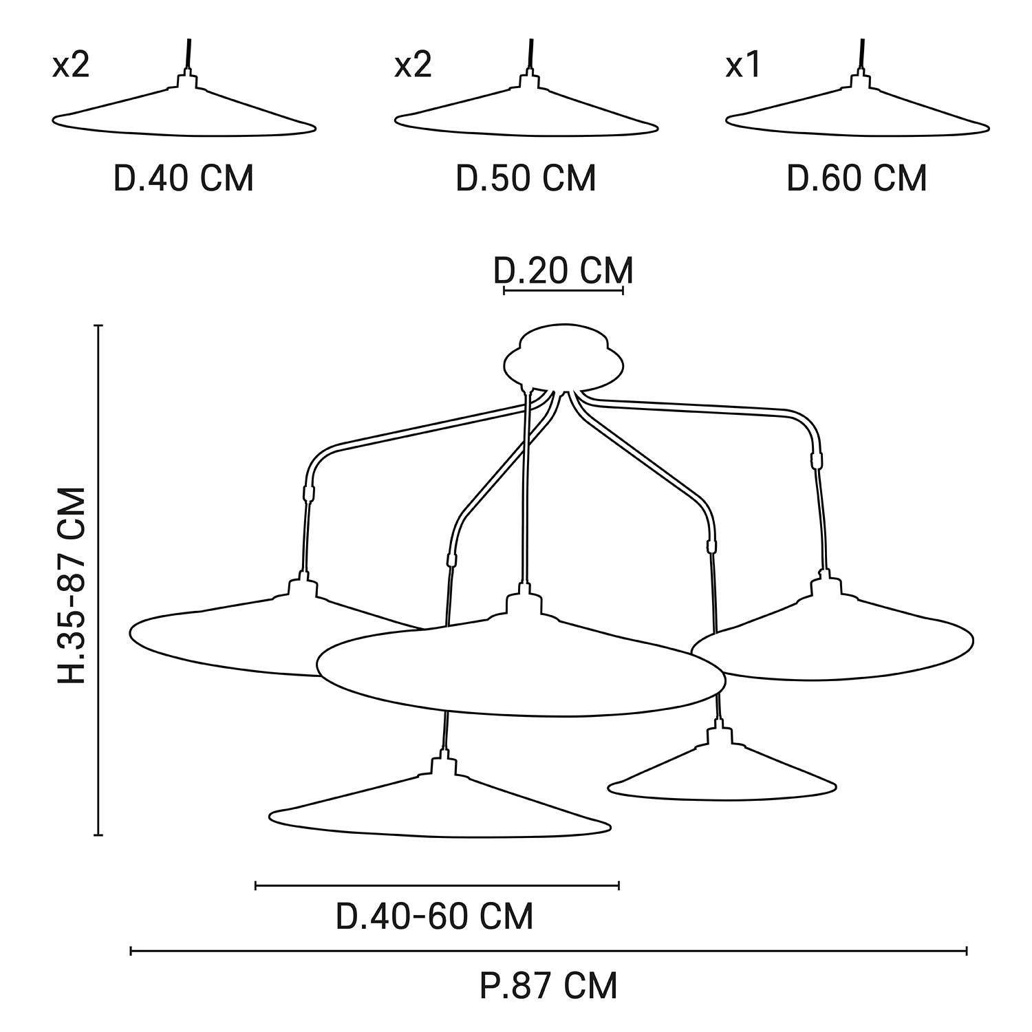 - Ø rosace 20 cm ; Ø abat-jour 40 - 60 cm
