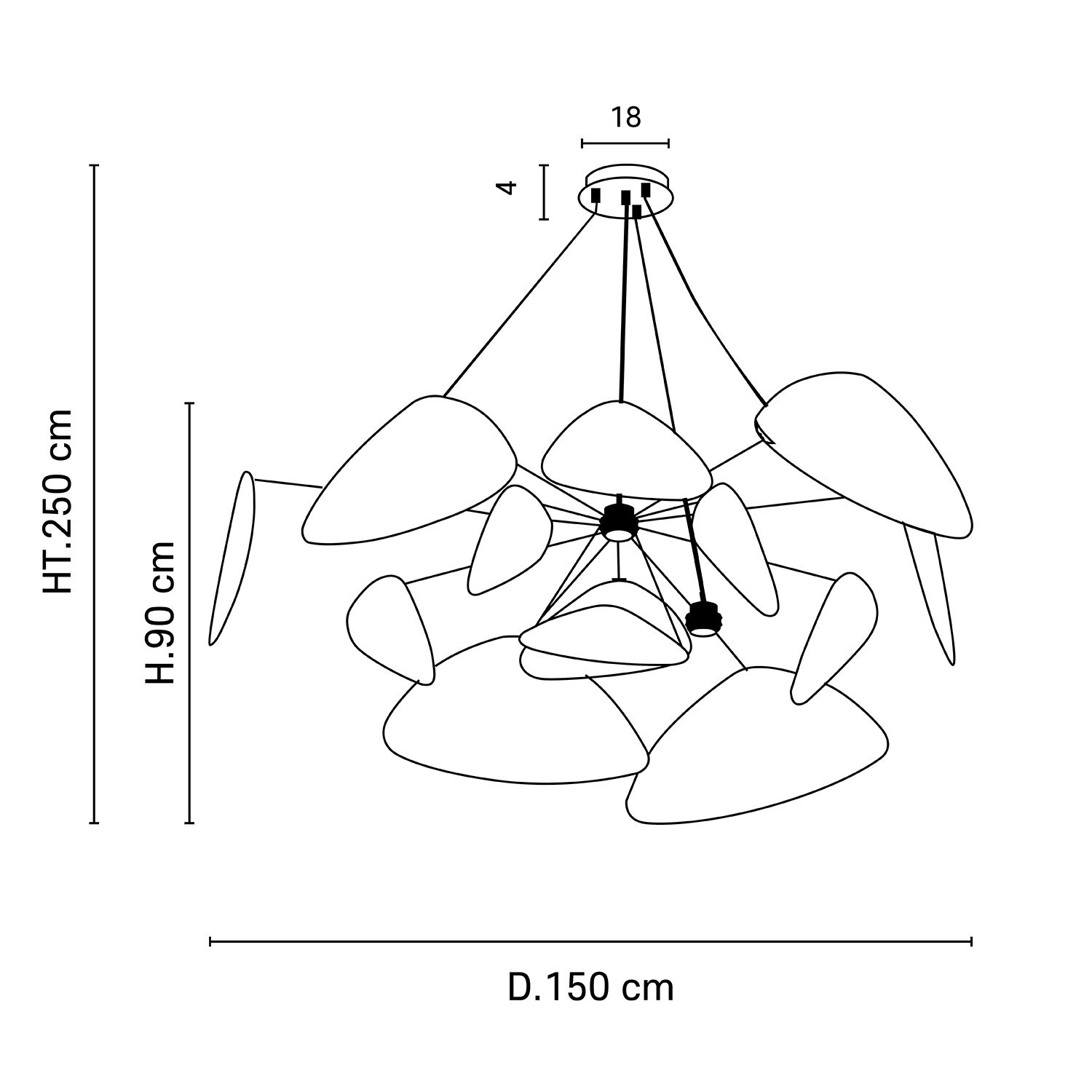 La suspension Screen 4L XXL est le choix idéal pour éclairer de manière atmosphérique de grands espaces ou pièces. Elle est équipée de 13 abat-jours de différentes tailles en papier Murano de forme triangulaire arrondie, qui, ensemble, donnent l'impression d'un mobile. Quatre douilles sont disposées entre les abat-jours. Les ampoules utilisées (non fournies) mettent habilement en valeur l'ensemble des abat-jours. Il en résulte un effet lumineux impressionnant avec un jeu fascinant d'ombres et de lumières.