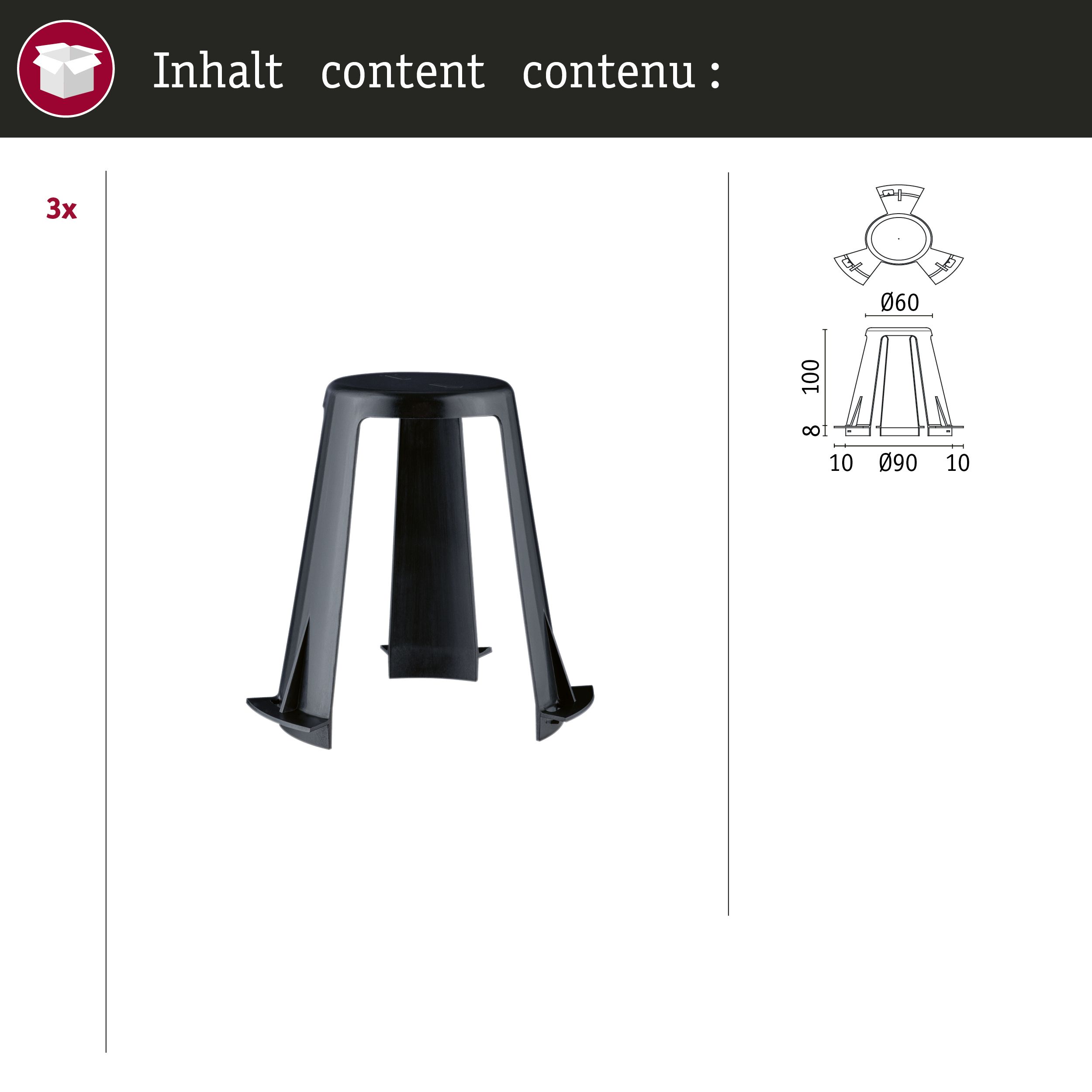 Entretoise pour plafonniers encastrés - lot de 3 Cette entretoise de Paulmann en plastique noir permet de monter des luminaires encastrables dans des faux-plafonds isolés. L'entretoise établit une distance sûre entre la LED, le film pare-vapeur et le matériau d'isolation et offre une installation sûre de tous les luminaires encastrables de taille standard. Les pieds en plastique peuvent être pliés et permettent le montage dans des ouvertures d'encastrement de Ø 6,2 à 9 cm. Ce kit comprend trois entretoises.