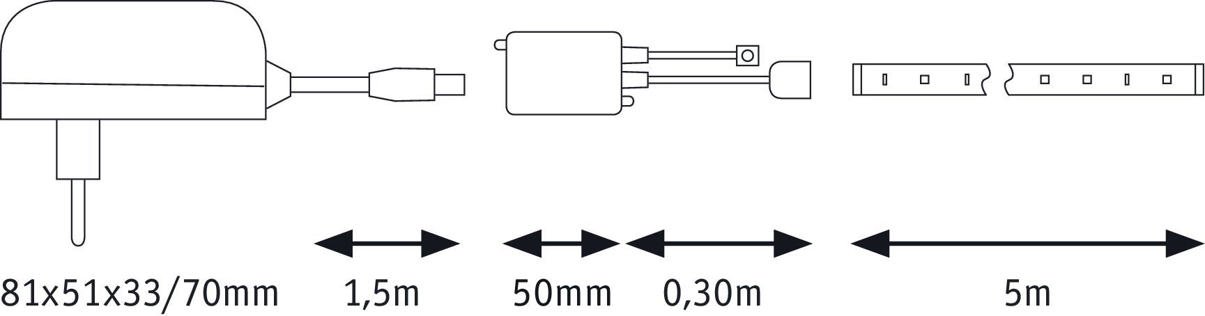 - kit prêt à l'emploi comprenant une alimentation 230/12V avec ligne d'alimentation et fiche secteur