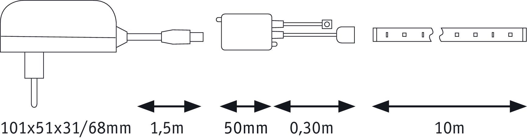 - kit prêt à l'emploi comprenant une alimentation 230/12V avec ligne d'alimentation et fiche secteur