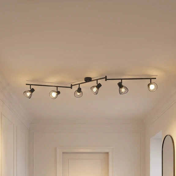 Le plafonnier Piena, un objet design à 6 lampes, allie esthétique moderne et sobriété scandinave, créant ainsi une atmosphère idéale pour la salle à manger, le salon et le couloir. La couleur noire souligne l'élégance du luminaire et en fait un élément qui attire le regard dans n'importe quelle pièce. Bien qu'aucun variateur d'intensité ne soit fourni, il est possible d'installer un variateur externe pour adapter la luminosité à ses préférences personnelles et créer l'ambiance souhaitée (veuillez noter que le variateur externe doit être acheté séparément).