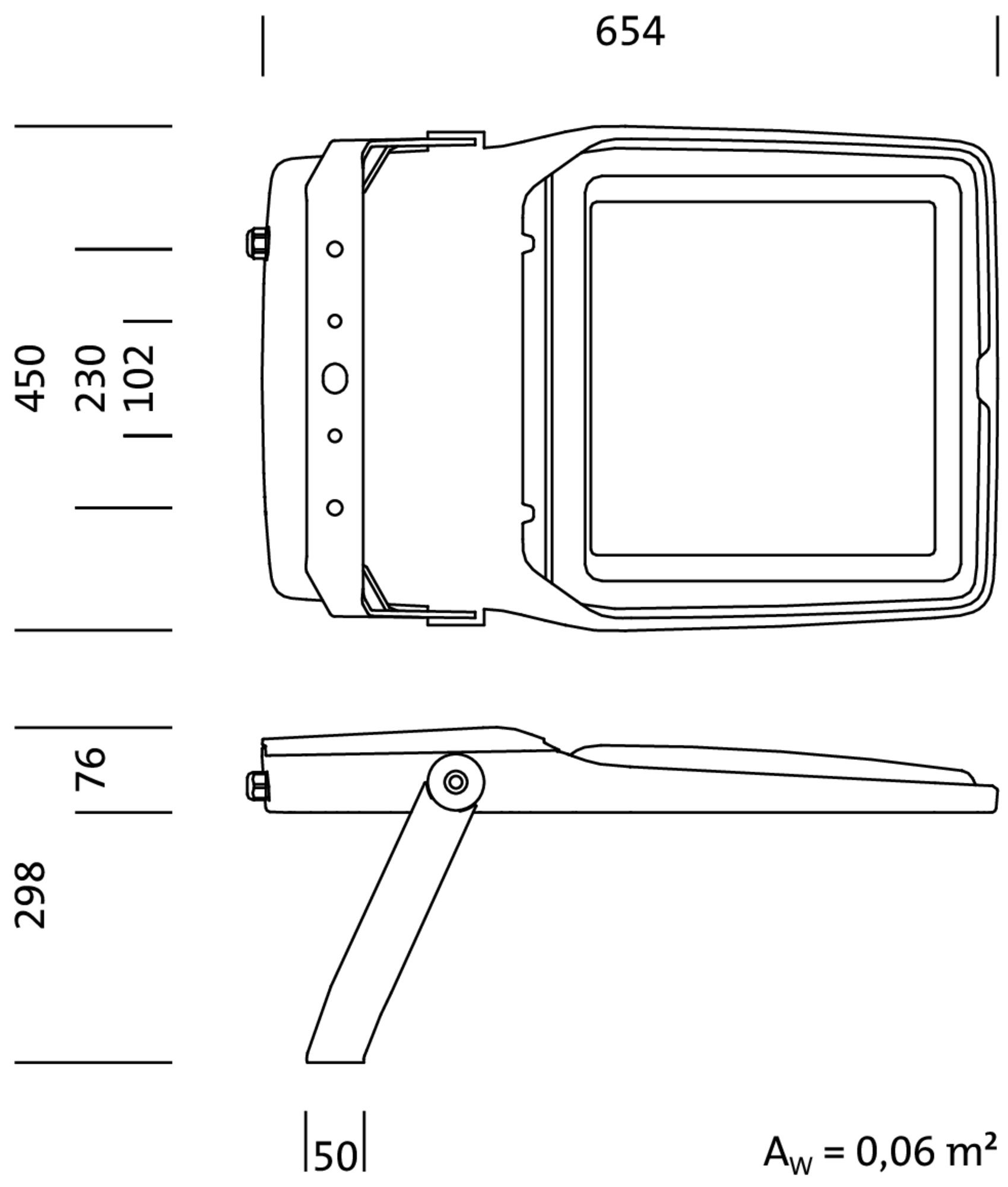 Projecteur d'extérieur Floodlight 20 LED avec orientation primaire de la lumière et IP66 Le projecteur d'extérieur Floodlight 20 LED est équipé d'une lentille pour orienter la lumière. Le cache sous forme d'une vitre de protection en verre de sécurité monocouche transparent provoque un rayonnement lumineux clair et non entravé des LED à rayonnement blanc neutre. Le spot est équipé d'un ballast électronique. Le cadre du boîtier en aluminium moulé sous pression a été peint par poudrage dans la teinte fer micacé (DB 702S). Avec une protection IP66 contre la pénétration de poussière et les jets d'eau puissants, le projecteur d'extérieur LED résiste sans problème aux intempéries et convient pour une utilisation dans une plage de températures de -40 à +50 °C. L'étrier de transport en acier revêtu par poudre permet de monter le spot de manière polyvalente, que ce soit à l'intérieur ou à l'extérieur - Raccordement : borne à 5 pôles, 2,5 mm² max. - Résistance aux chocs 6kV 1,2/50µs - Durée de vie assignée 50.000 h L98/B10 à 25 °C