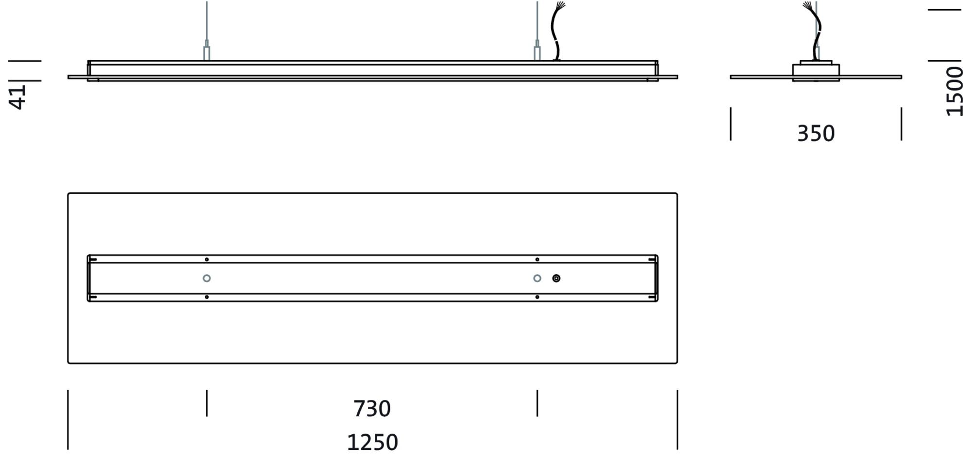 La suspension nécessaire est disponible dans les accessoires. Pour chaque luminaire, il faut une suspension avec baldaquin pour le côté du câble/raccordement au plafond et une suspension sans baldaquin pour l'autre côté.