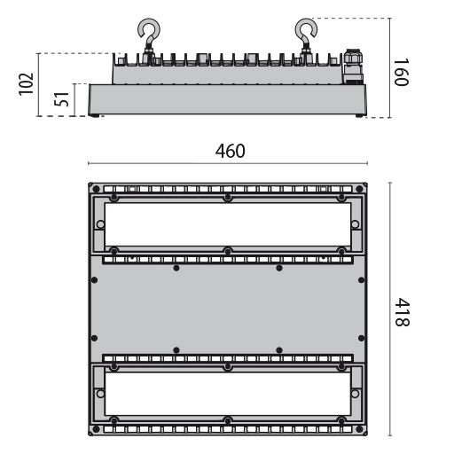 Suspension LED Lama+S/W pour les espaces industriels intérieurs et extérieurs La suspension LED Lama+S/W est composée d'un corps en aluminium moulé sous pression et peint à la poudre de polyester, ainsi que d'un diffuseur protégé contre les rayons UV et la chaleur, avec une optique N/B symétrique intégrée en lentilles technopolymères à transmission lumineuse accrue. La source lumineuse se compose de plusieurs modules LED. Le couvercle du compartiment à câbles est fabriqué en polymère haute performance. Des crochets de suspension en acier galvanisé sont joints à la livraison. Remarque : si la suspension LED Lama+S/W est utilisée dans des locaux où l'on trouve des huiles naturelles ou minérales ou dans des atmosphères susceptibles de nuire au polycarbonate, il faut utiliser un verre de protection qui - tout comme une grille de protection - est disponible séparément dans les accessoires. Caractéristiques techniques - UGR<22 - joint en silicone résistant au vieillissement et à haute capacité de résilience - raccordement électrique par connecteur rapide prise mâle extérieur IP66 - vis extérieures en acier inoxydable