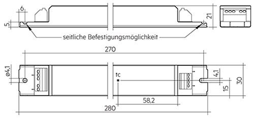 - pour l'installation dans des environnements secs - avec possibilité de fixation latérale - plage de gradation : 1 % à 100 % - lumDATA : données du luminaire, rapport énergétique, diagnostic et maintenance - température ambiante en fonctionnement : - 25 °C à + 65 °C - interface de commande : one4all (DALI, DSI, switchDIM, corridorFUNCTION) - Borniers enfichables à 45° pour le raccordement - EN 55015, EN 61000-3-2, EN 61000-3-3, EN 61347-1, EN 61347-2-13, EN 62384, EN 61547, EN 62386-101/102/103, EN 50172 (installations à batterie centrale), EN 60598-2-22 (installation d'éclairage de secours)